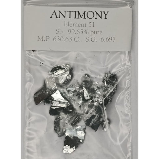 Billing Metals & ManufacturingThis is a 10 gram sample bag of 99.65%+ Antimony metal sample chunks, great for an element sample, alloying small amounts of metal or chemistry pro...