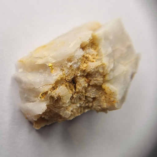 This is a chip of white reef Quartz with a patch of bright and quite crystalline gold though one end of it. The gold is very bright and although th...