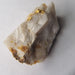 This specimen has a line of bright flakes of wiry gold sitting on top of it, it displays really well as it sits nicely on the shelf. It is white reef quartz with some iron oxides plus gold.